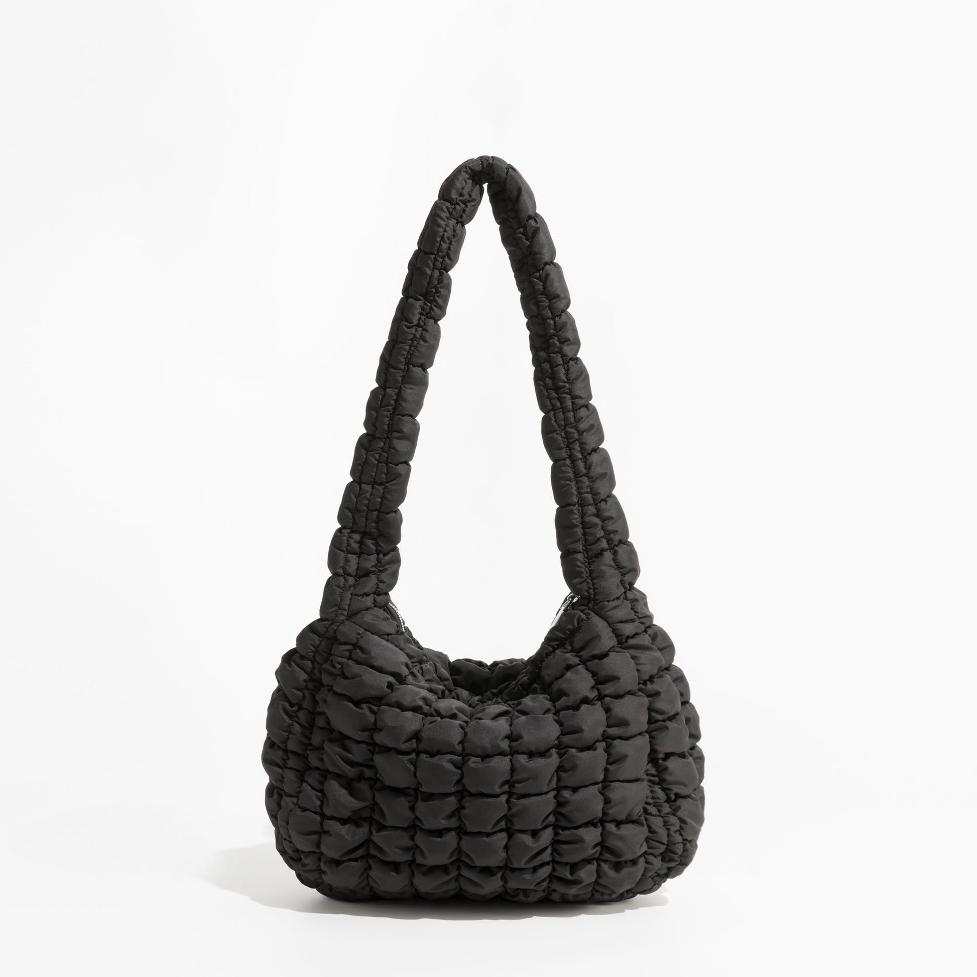 - Quilted design with zipper closure